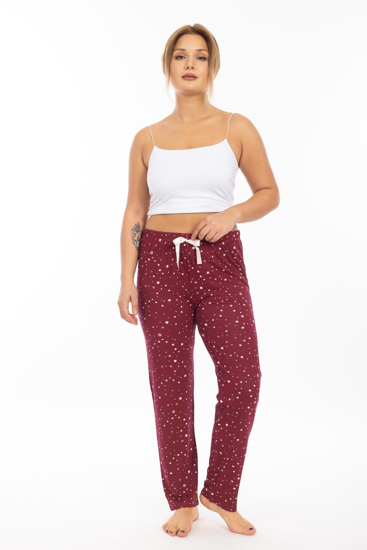 Ms Bayan Viskon Pijama Tek Alt 25y Evm bordo/yıldız desenli
